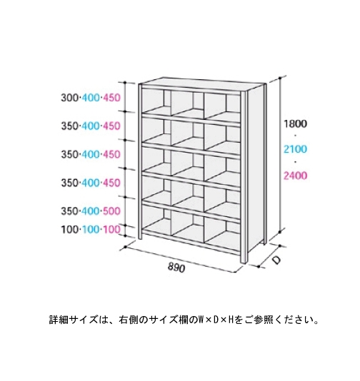 耐荷重120kgD型ボックス棚高さ2400mm横幅890mm×奥行き465mm[NAIKI/ナイキ]
