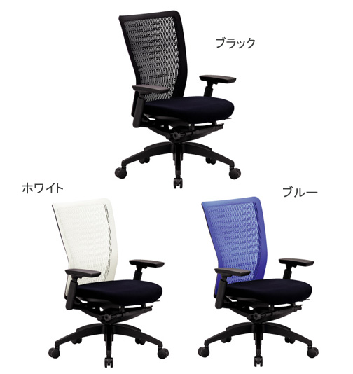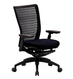 ●サイズ:W675×D580×H975?1035(SH445?505)mm ●質量:10.2kg ●座:再生PET防汚性布張り ●背:強化ナイロン樹脂、PP樹脂成形品、モードウレタンフォーム ●脚部:強化ナイロン樹脂成型品 ●キャスター:ナイロン ●肘掛け:樹脂成型品