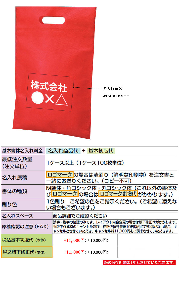 名入れ不織布バッグ専用「初版代」
