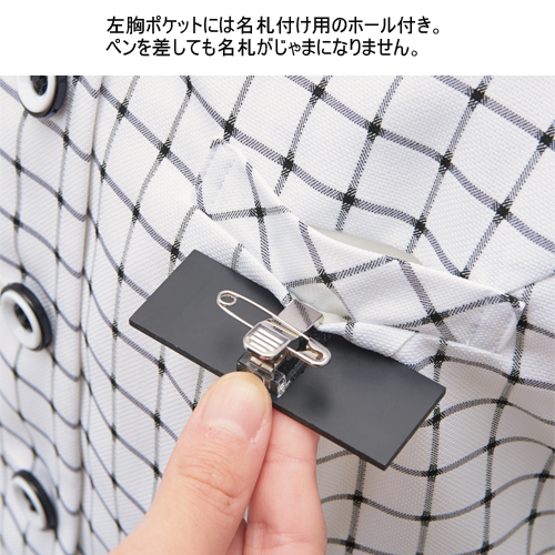 ●名札ホール ●肩ベルト付 ●汗脇パッド