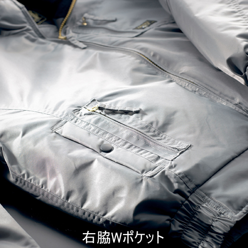 左胸、右わき、左袖の3カ所にファスナーポケットを採用。さらにボタン式ポケットも各所に用意し、収納機能性に優れています。カラーバリエーションはネイビー、グレー、クロ、レッドと、スタンダードなカラーが揃った4色で、企業様のユニフォームにオススメなカラー展開となっています。