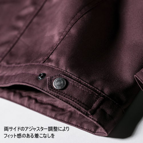 両サイドのアジャスター調整によりフィット感のある着こなしが可能です。