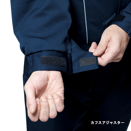 安全仕様のリフレクターパイピングデザインが施された、企業ユニフォームに最適なワークウェア。