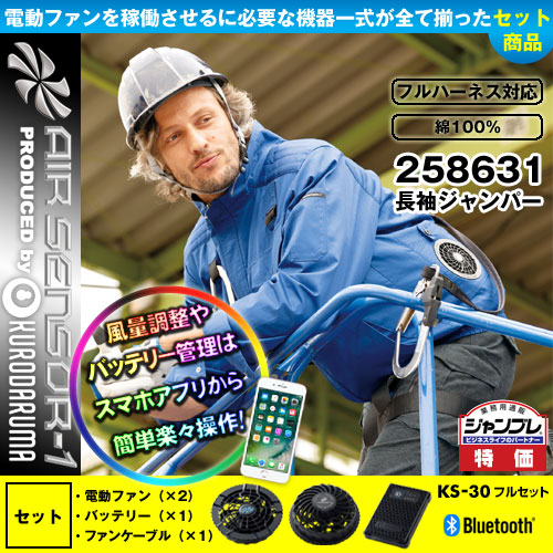 258631 [クロダルマ] ファン付きウェア AIR SENSOR-1 ハーネス対応長袖ジャンパー(ファン対応作業服)