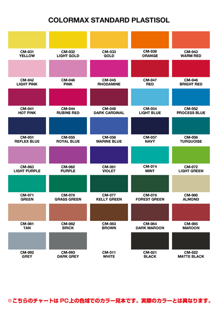 ※ピーチ、チョコレート、ラベンダー、サックス、シーブルー、アクア、ミント、ミントグリーン、ライム、ブライトグリーン、フォレスト、ゴールドイエロー、コーラルオレンジ、イタリアンレッドは廃色です。