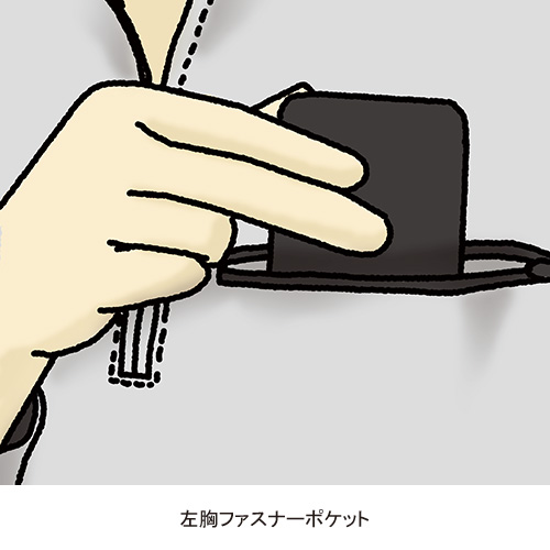 ●左胸ファスナーポケット●袖先調整ボタン付カフスし立て