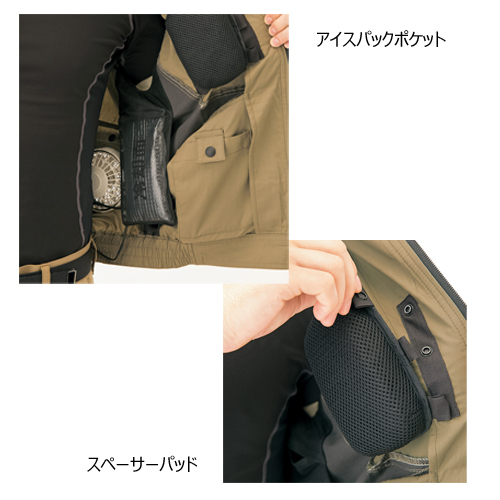 空調服の涼しさをを損なわずフルハーネスを着用できる『スペーサーパッド』対応の空調服長袖ブルゾン。