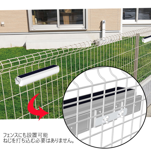 自分で太陽光発電するからコンセントや電池も要らず、外壁やフェンスなどの上に置くだけで使えるお手軽なLEDセンサーライトです。ブロック塀にも工事不要で設置できます。