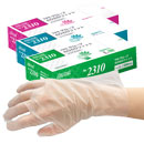 ポリエチレンとTPEを混ぜて作った使い捨て手袋です。ふつうのポリエチレン手袋に比べて伸縮性、引張強度があり、しなやかな付け心地で作業性があります。