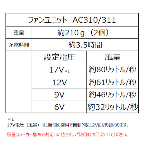 AC311 [BURTLE(バートル)]エアークラフト ファン付きウェアオプション ファンユニット