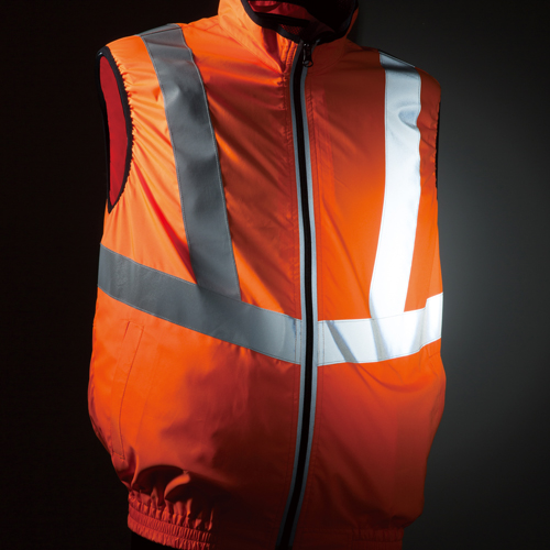 安全ベストが空調ウェアになりました! 高視認性安全服のJIS規格であるJIS T-8127適合品です。高い視認性と涼しい空調ベストで、車からも暑さからも守ります。