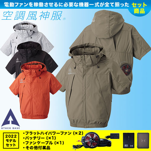 5545 [アタックベース] 空調風神服12Vファン・バッテリー(2022年型)セット The tough 半袖ブルゾン