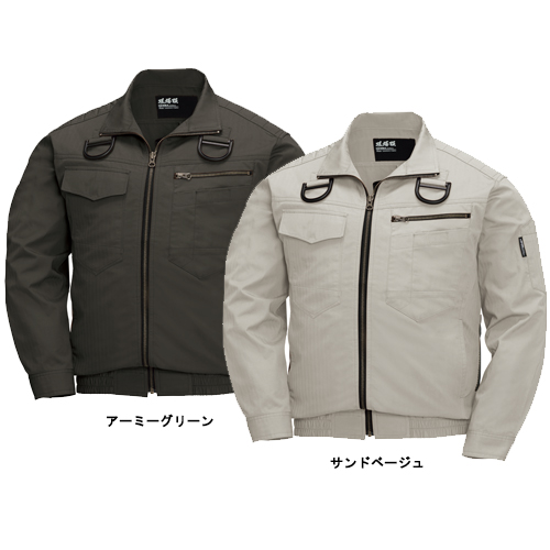 現場服 長袖ブルゾン2170/2270シリーズの空調服仕様です。さらに高所作業向けフルハーネス対応。肩は刺し子で補強し、建設現場や鳶職人にもお薦めです。