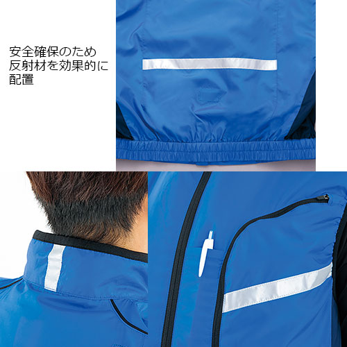 首元・胸部・背面下部 それぞれの見えやすい位置に反射材を採用し夜間や暗い場所での安全を確保。