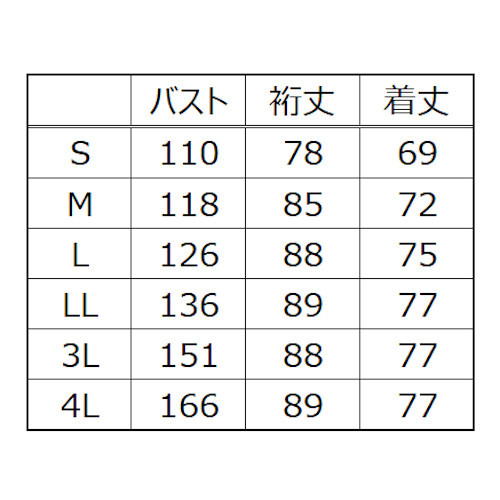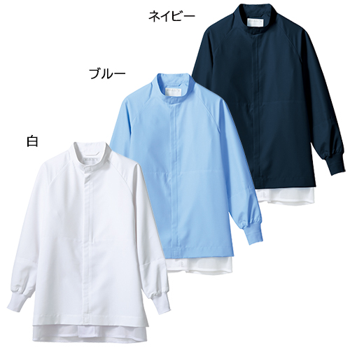 透けにくく安心設計された薄手素材で軽くて着心地よくインナーなを気にせず着用できるタイプです。腰ネット:スナップ留め。丈が長いジャンパータイプの製品です。着る人のストレスを減らした特殊設計でとにかく肩や腕が動かしやすくて快適!持ち上げたり、曲げたり、左右に広げるなど、さまざまな肩と腕の運動に着目。背中パーツと袖パーツの縫い目をなくし、肩甲骨周辺から立体的に設計することで、アームホールの可動域を格段にアップさせました。また、二の腕や脇などに無駄なもたつきがでないよう、ゆとりを持たせる幅は緻密に計算。すっきりとしたシルエットと着用時の心地よさをキープしながら、運動性を高めています。細めの下腕で、袖が食品に触れずに衛生的!肘から下は、従来の衛生白衣に比べてやや細めの仕様に。盛付け作業等で、袖が食品に触れて汚れるのを防ぎ、清潔な状態を維持できます。また、衣類からの異物混入や菌の繁殖を防ぎ、作業性もアップ!食や、作業環境の安全性を保つことができます。異物発生のリスクを大幅にカット。製品の強度を保ちながら、独自のパターンと縫製により、従来品とくらべて製品全体でのステッチが20%減少、また、製品の表に出るステッチも50%減少させることを実現。縫製箇所からの糸クズ発生の軽減につながり、異物混入リスクも大幅にカットします。さらに、縫製箇所が減少したことにより、シワの発生も抑え、簡単なお手入れでキレイなシルエットが続きます。特殊縫製でさらに安全に。生地の裁断面から生じる糸クズやチリ、ホコリが外に出ず、ステッチも表に出ないパイピング縫いを採用しています。ゆとりの設計で、各サイズとも従来よりも幅広い範囲をカバー。「動きやすさ」を追求した設計により、サイズにもゆとりが生まれました。Lサイズが従来のM後半~LLに相当するなど、各サイズともにカバーできる範囲が拡張。より幅広く対応できるため経済的。ユニフォームの在庫管理もラクになります。ご希望納期がございましたら、ご注文時ご指示ください。当サイトでは、半袖シャツ・コック帽等取り扱いがございます。ご検索下さい。【男女兼用】・・・女性が着用する場合はワンサイズ下のサイズがおすすめです。