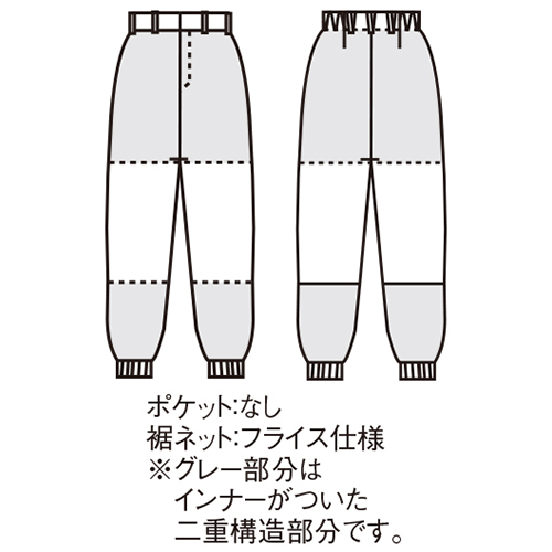 ノータックで脇はゴム。ゴミの付着や放電ショックを防ぐ静電気防止。