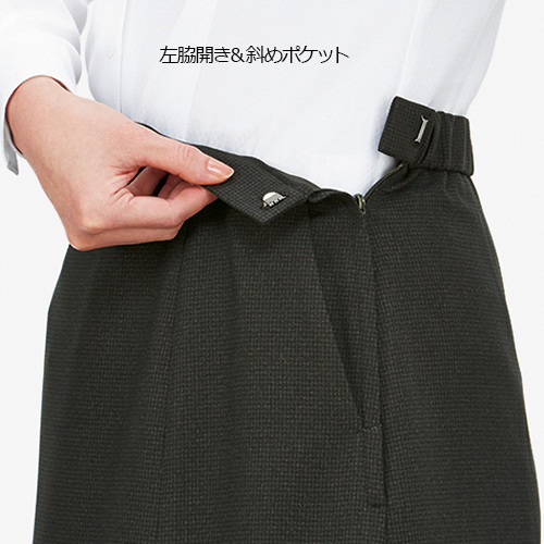 着脱がスムーズな左脇ファスナー開き。出し入れしやすい両脇斜めポケット仕様。