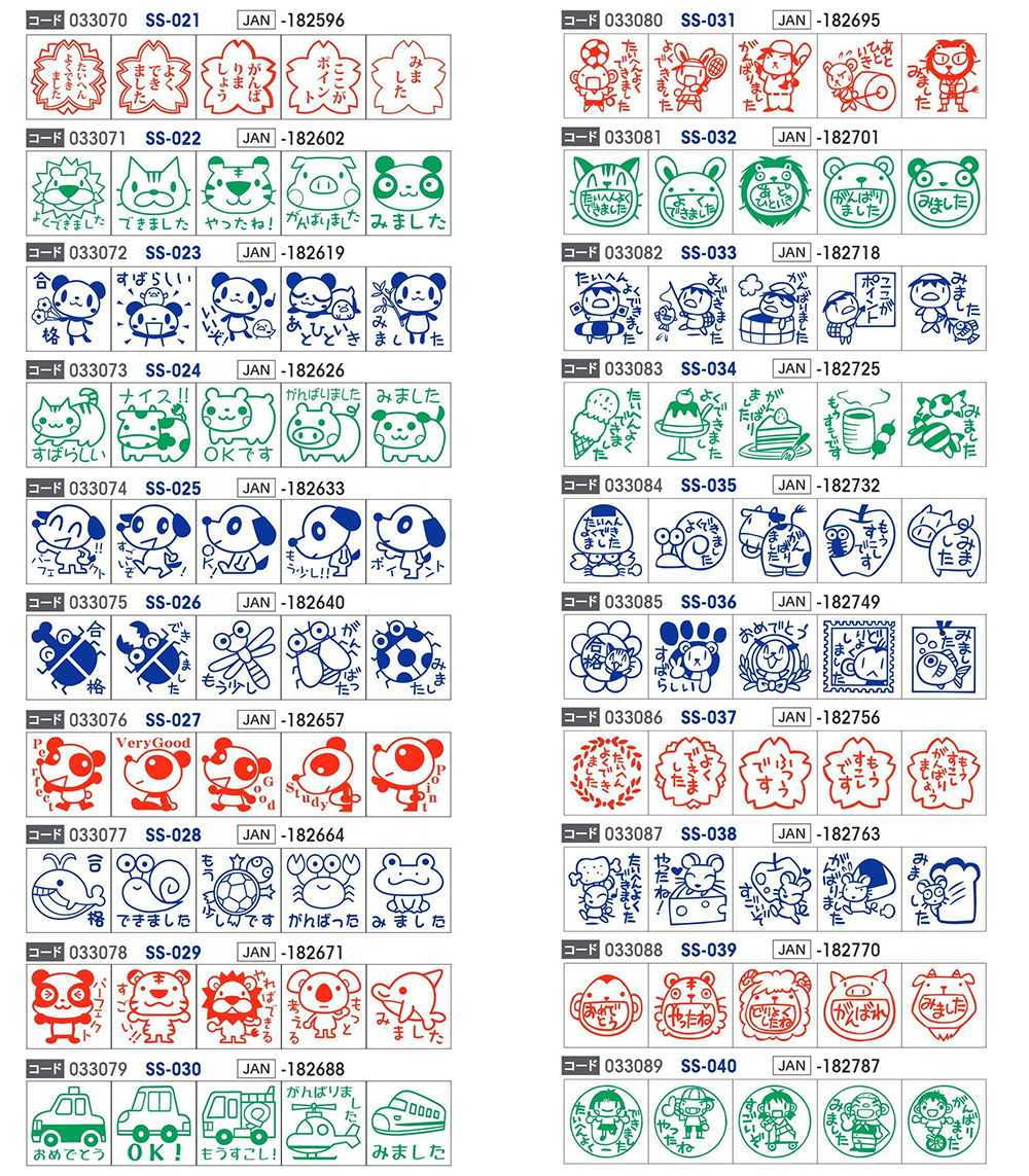 学校や習い事、子どもの宿題など、評価印として使えるスタンプです。