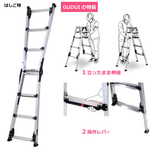 [アルインコ] 上部操作式伸縮脚付はしご兼用脚立 GUS-120 GUS-120