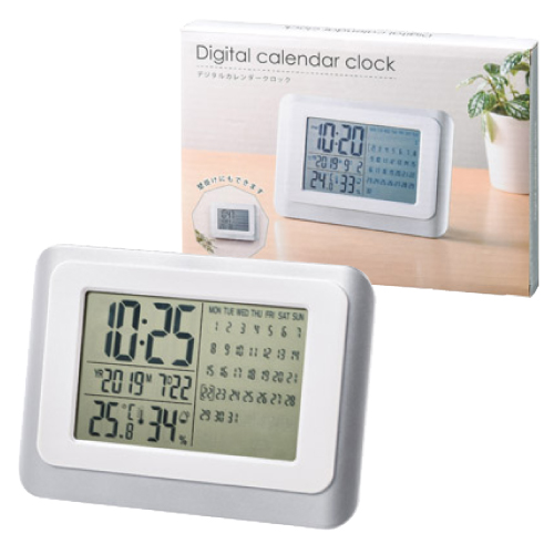 ●商品サイズ 139×198×20mm ●個装形態 化粧箱(26×205×145mm) ●材質 ABS ●備考 単四乾電池2本使用(別途) ●基本機能アラーム/カレンダー/温度計/湿度計
