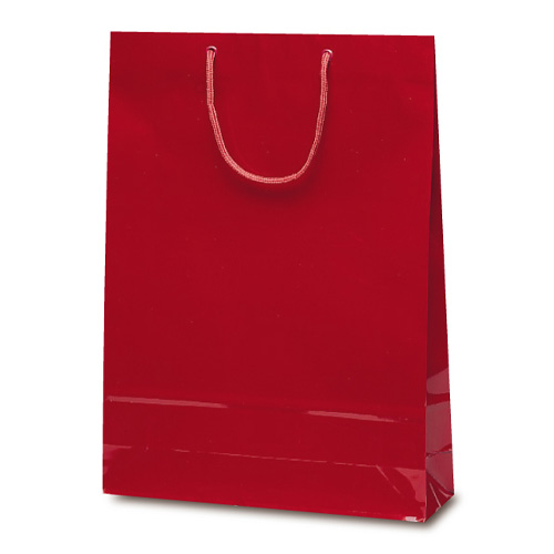 卒入学などの式典や、アパレル、雑貨業界向けで活躍する高級感ある手提袋です。紐穴補強(ハトメ)もあり丈夫です。表面グロス(光沢)PP貼。