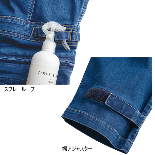 定番デニムツナギですが、着ると違いがわかる超絶ストレッチに加えてデニムと思えない軽やかさもあります。