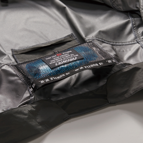 背ヨークに保冷剤を収納可能な通気エアダクトポケットを装備。