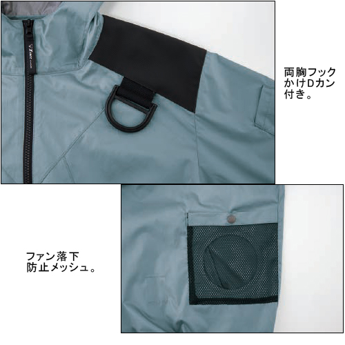 ご使用ケーブルについてこちらの商品は従来型空調服よりファン位置が脇側に配置されている為、3L以上のサイズについてはロングケーブルで納品いたします。