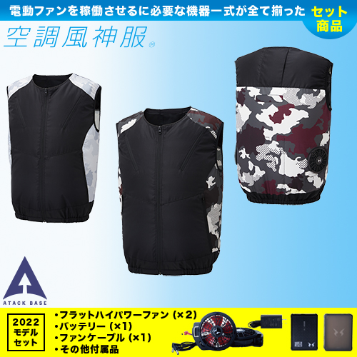 KF92362 [アタックベース] 空調風神服12Vファン・バッテリー(2022年型)セット ベスト(カモフラ)