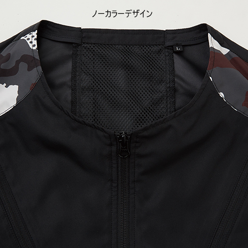 すっきりとした印象のノーカラーベストが新登場。アウトドアにも最適なカモフラデザイン。