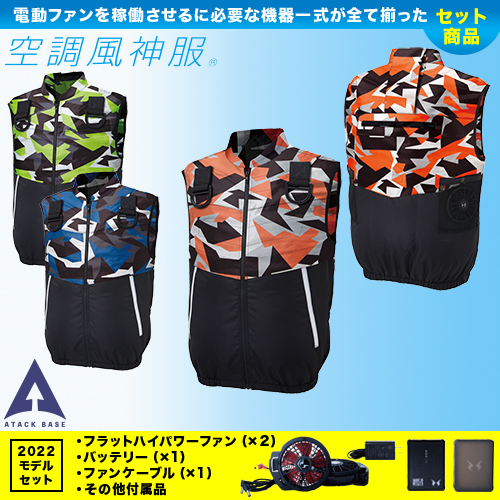 KF92382G [アタックベース] 空調風神服12Vファン・バッテリー(2022年型)セット フルハーネス対応ベスト