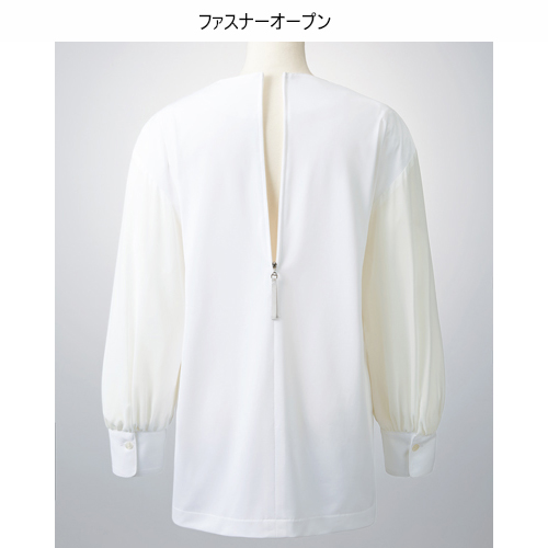 上品な透け感とふんわり袖で華やかに着こなせるシースルー仕様。