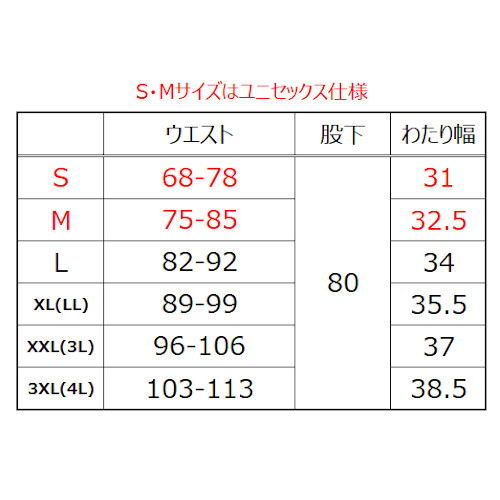 細身のスッキリ程よくテーパードシルエット。S~3XLまでの男女兼用。サイズ表参照。