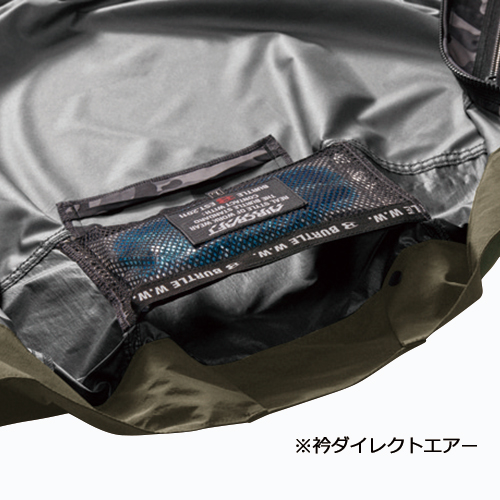 背ヨークに保冷剤を収納可能な通気エアダクトポケットを装備。