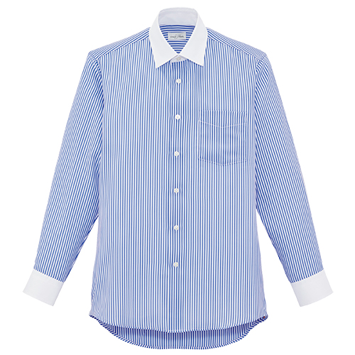 ロンドンストライプは爽やかなカラーのストライプは衿とカフスをホワイトに切り替え清潔感アップ!