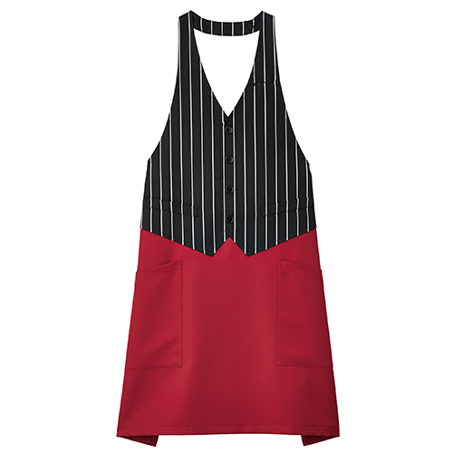 [FACEMIX(ボンマックス)] FK7176 ベスト風エプロン 配色+ストライプ