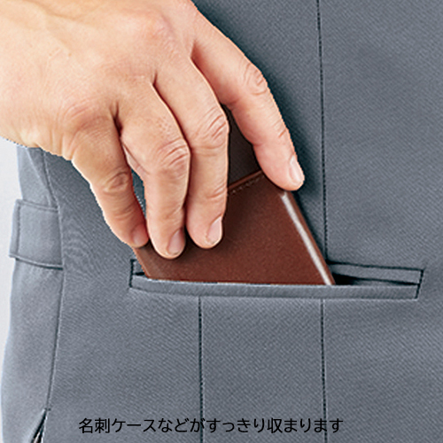 フォーマルシーンに最適。< br>出し入れしやすい胸ポケットや脇ポケットの袋布は上部にある空間によって名刺ケースがすっぽりおさまります。