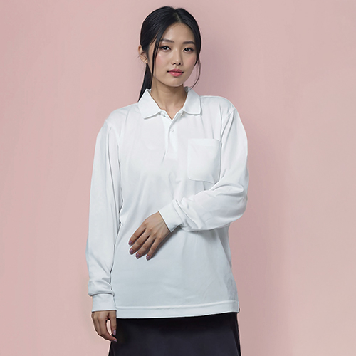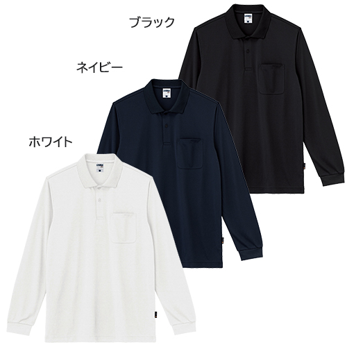 吸水・速乾性・汗をニオイにしない「ポリジン・ステイフレッシュ」加工を施したベーシックタイプの長袖ポロシャツ。