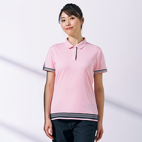 裾・前立て・袖のラインがアクセントのデザインポロシャツ。