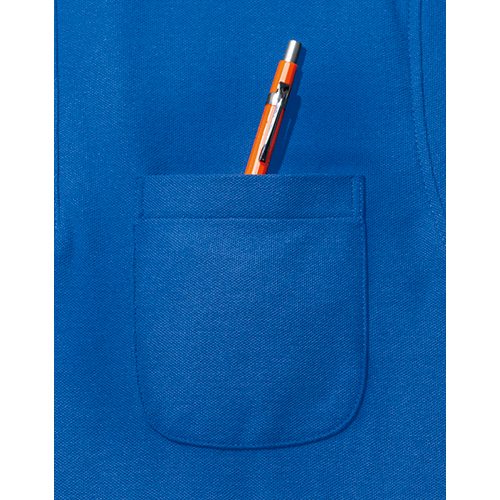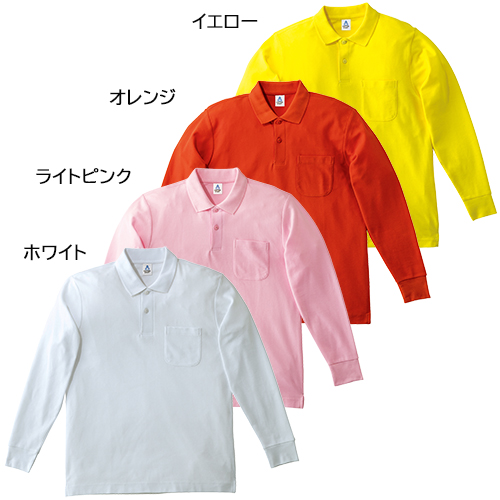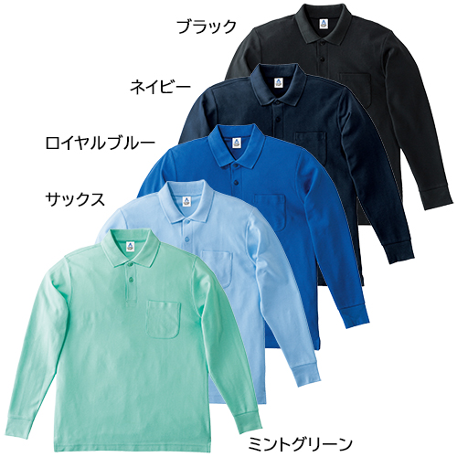 ワークシーンにも最適の長袖ポケットつきポロシャツ。