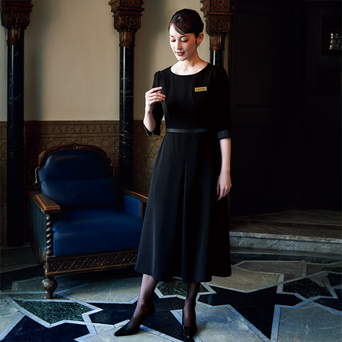 ワンピースやジャケットのサテン使いや、スカートのプリーツ、パンツのストレートシルエットなど、細部に女性の美しさを引き出すディテールが活かされています。