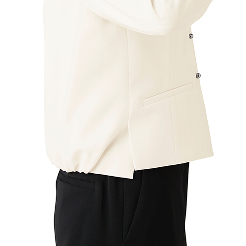ブルゾン風のバックギャザーデザインで動きやすさを叶えます。