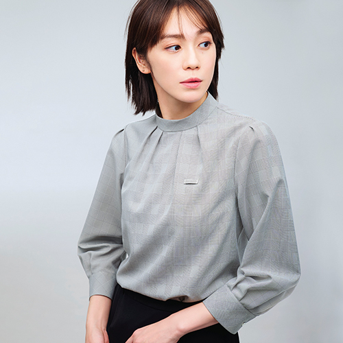 サービスシーンで活躍するプロのために生まれた華やかなで着られる彩り豊かなスタンドカラーブラウスです。