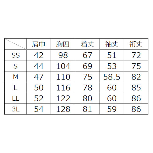 | カラー | サイズ | 数量 (着) |