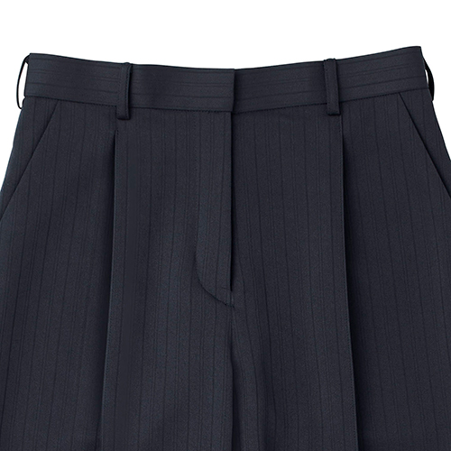 ブライト糸と凹凸のあるデザイン組織で上品な艶感とドレープ性を感じさせるシャドーストライプ。