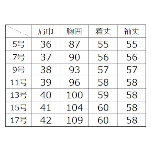 カラー | サイズ | 数量 (着) |