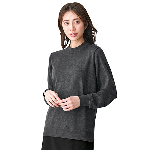 ほどよいゆとりシルエットとモックネックで防寒対策にも。