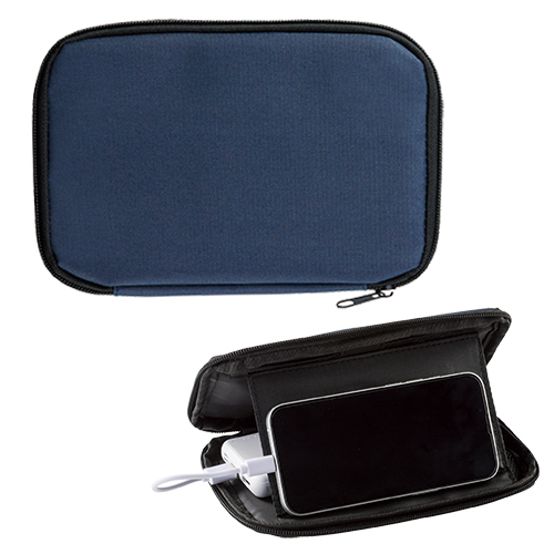 文具やモバイルグッズ、コスメの整理等に役立つ、5つのポケットが付いた便利なポーチです。スマホやミラーが置けるスタンド機能もポイント。