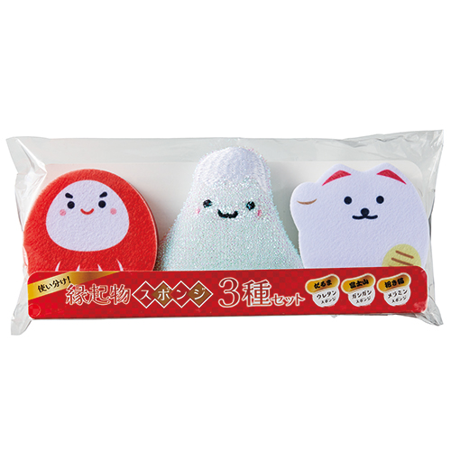 縁起の良い3つのモチーフをかわいくスポンジに。それぞれ用途が異なる機能性も兼ね備えた、使い分け出来る嬉しいスポンジセットです。