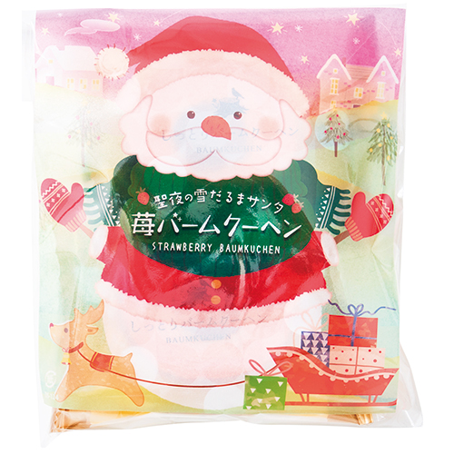 見た目も味も楽しんでいただけるサンタクロースのパッケージに入った苺味のバームクーヘンです。